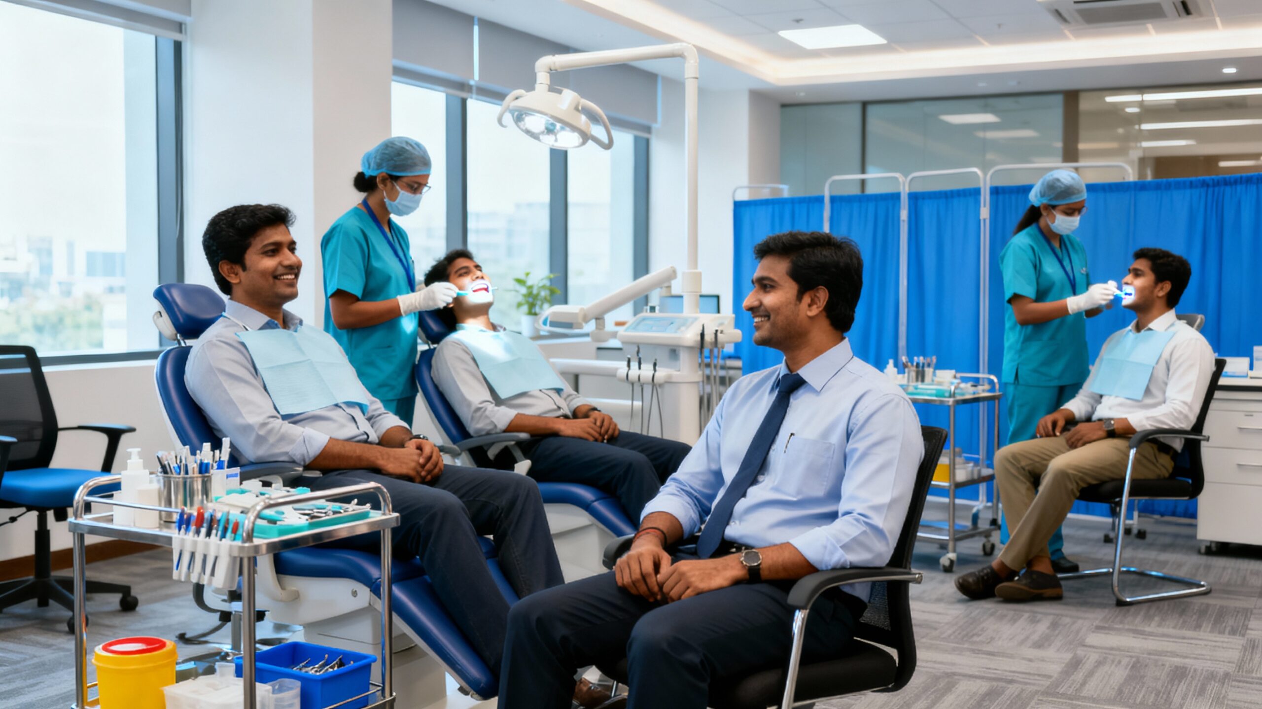 Elevate employee wellness with on-site dental checkups, preventive care, and personalized smile plans tailored for your team.