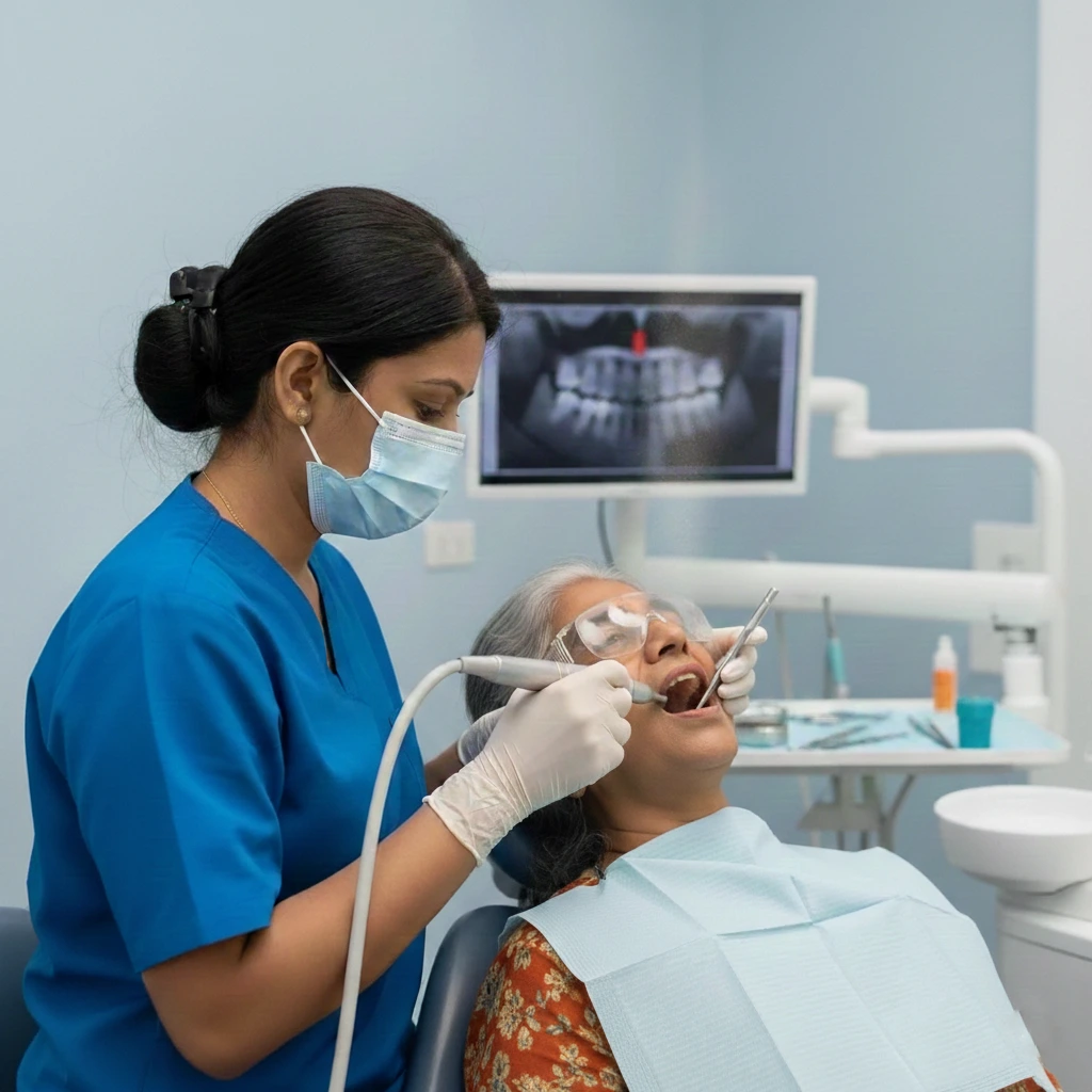 Your dentist first checks for gum pockets, plaque buildup, and signs of sensitivity. Based on your oral condition, the dentist recommends either regular cleaning or deep cleaning (root planing) for more advanced cases.